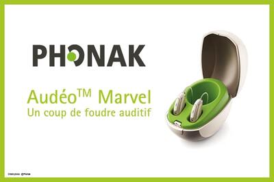 Audéo Marvel™ repousse les limites des technologies auditives pour créer une solution offrant une qualité sonore exceptionnelle. Équipées des dernières technologies de Phonak, les aides auditives Marvel sont simples d’utilisation. Elles se connectent directement aux smartphones et à la télévision. Marvel offre plus de 95% de compatibilité avec les systèmes Bluetooth® existants dans le commerce (smartphones, tablettes, ordinateurs, et tout système compatible Bluetooth émettant des sons, quel qu’en soit la maque ou le modèle).